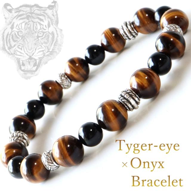 天然石 パワーストーン ブレスレット AAA タイガーアイ オニキス メンズ アクセサリー