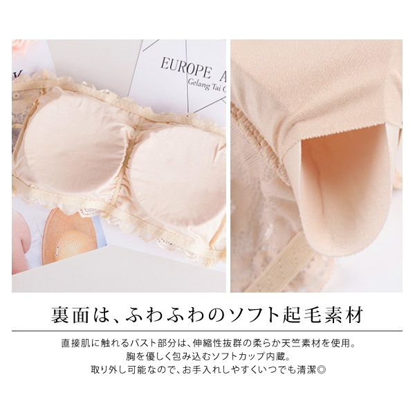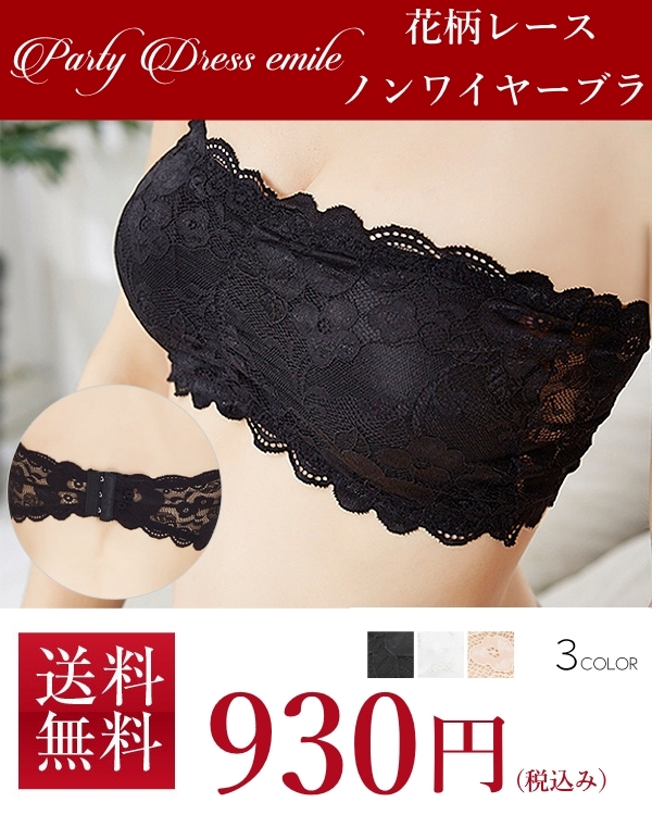 レビュー特典 ドレス インナー ブラジャー チューブトップ ブラ ノンワイヤー 谷間魅せ 総レース ショーツ 脇肉 機能性 ストラップレス フォーマル emile0107
