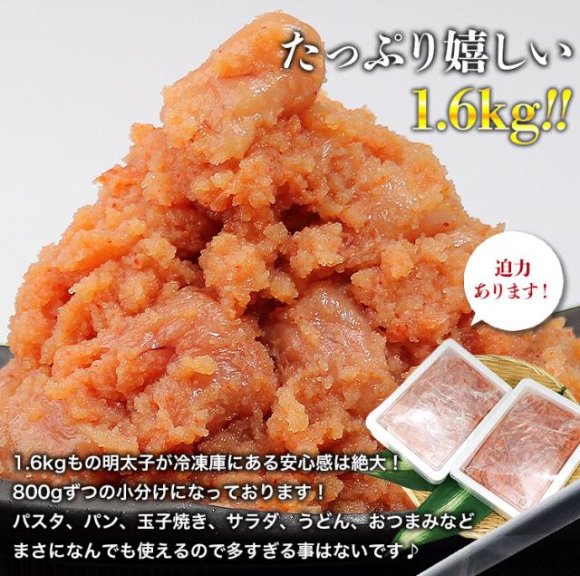 無着色 訳あり 辛子明太子 1.6kg (800g×2) 送料無料 ご飯が超すすむピリ辛仕上げ 並切れ バラ子混じり めんたいこ メンタイコ 食品 グルメ 海鮮 プレゼント 魚卵 ギフト プレゼント