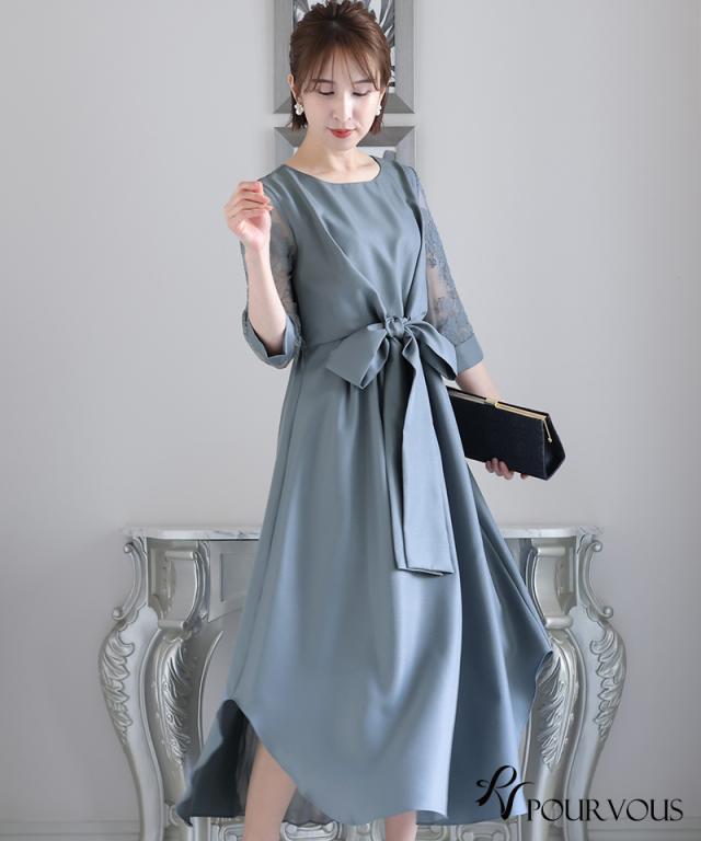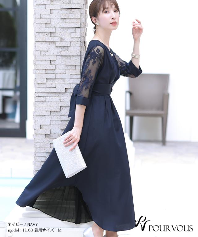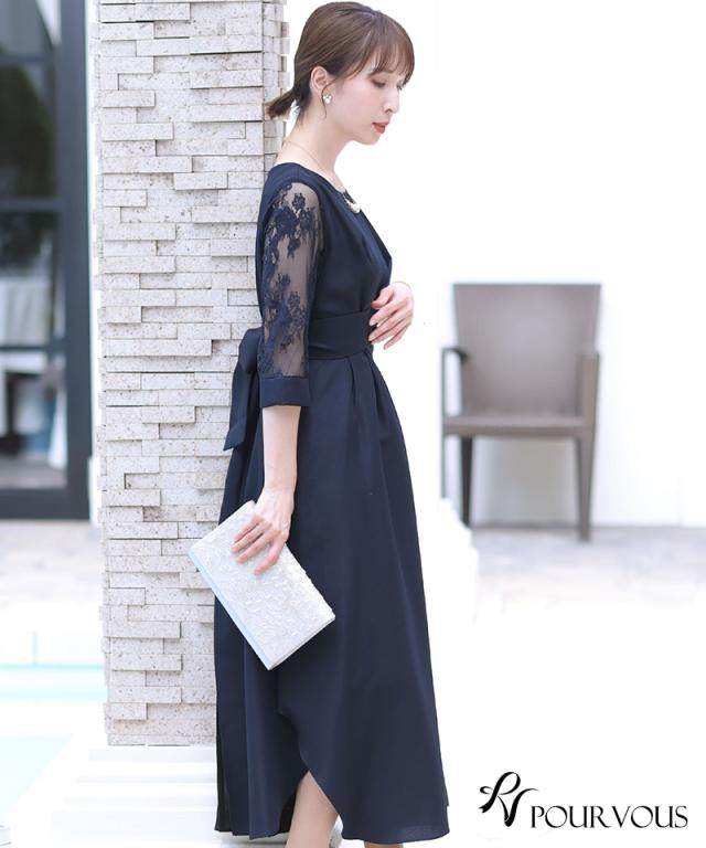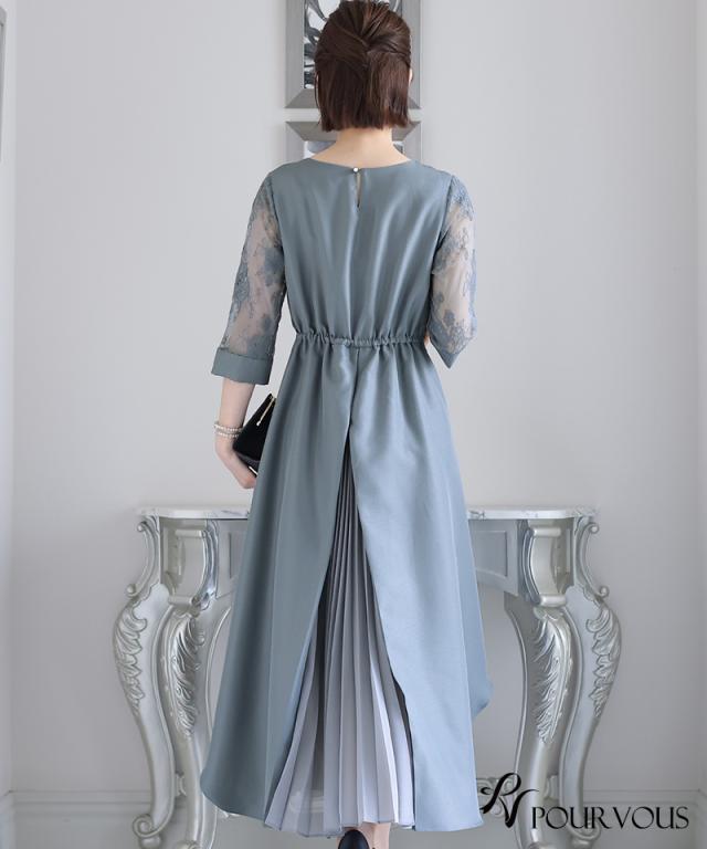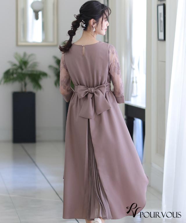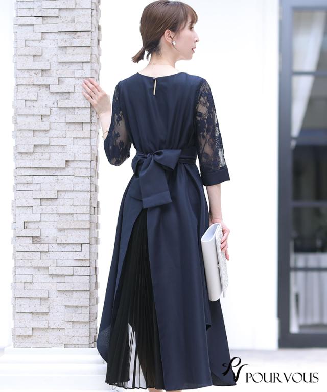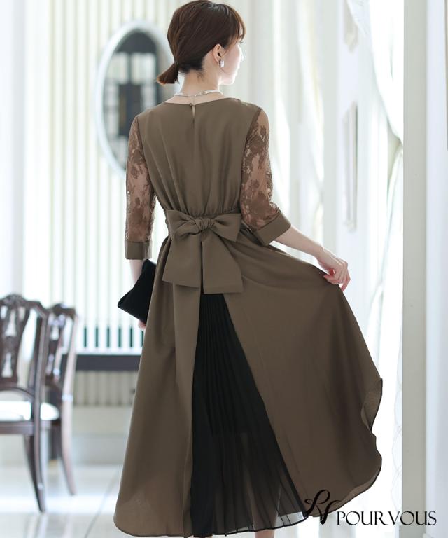 バックプリーツ&レースリボンドレス【3585】10代・20代・30代・40代・50代ドレスワンピ・服装・ワンピース・フォーマルワンピ・ドレスカジュアル・ブランド・半袖・七分袖・長袖・袖あり・リボン・ショート・スリーブ・膝丈・薄手・厚手・無地・脚長効果・伸縮性・レース・キレイめ・着やせ・体型カバー・スタイルアップ・ドレープ・小さいサイズ・3Lや4L・かっこいい、かわいい・即日発送・送料無料・・ご利用シーン・結婚式・婚活・披露宴・顔合わせ・発表会・演奏会・二次会・同窓会・お呼ばれ・食事会・謝恩会・親族・七五三・お宮参り・冠婚葬祭・弔事・女子会・韓国・デート・入学式・卒業式・入園式・卒園式・ママ・ピアノ・マタニティー・セレモニー・セレブ・パーティー