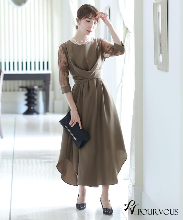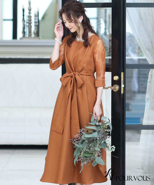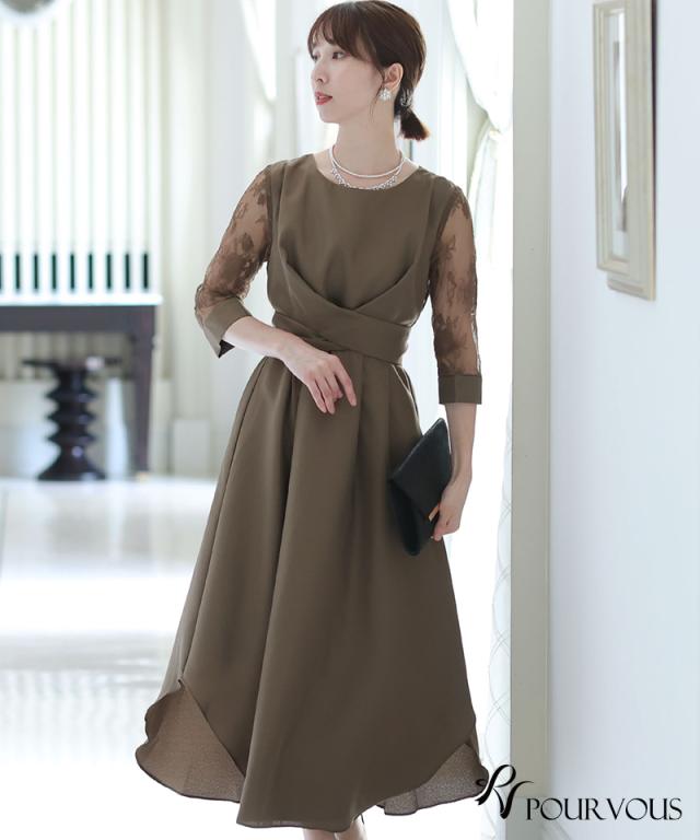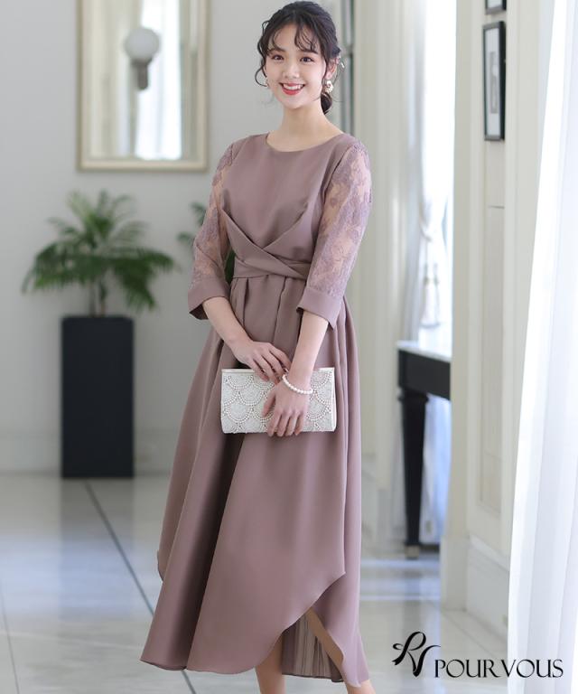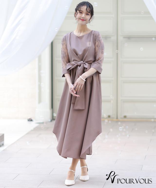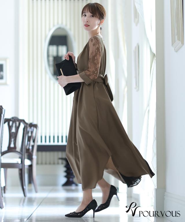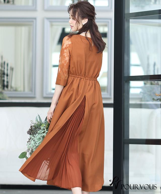 バックプリーツ&レースリボンドレス【3585】10代・20代・30代・40代・50代ドレスワンピ・服装・ワンピース・フォーマルワンピ・ドレスカジュアル・ブランド・半袖・七分袖・長袖・袖あり・リボン・ショート・スリーブ・膝丈・薄手・厚手・無地・脚長効果・伸縮性・レース・キレイめ・着やせ・体型カバー・スタイルアップ・ドレープ・小さいサイズ・3Lや4L・かっこいい、かわいい・即日発送・送料無料・・ご利用シーン・結婚式・婚活・披露宴・顔合わせ・発表会・演奏会・二次会・同窓会・お呼ばれ・食事会・謝恩会・親族・七五三・お宮参り・冠婚葬祭・弔事・女子会・韓国・デート・入学式・卒業式・入園式・卒園式・ママ・ピアノ・マタニティー・セレモニー・セレブ・パーティー