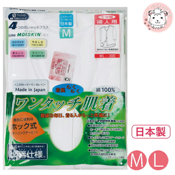 7分袖 前開きシャツ ワンタッチ肌着 ホック式 抗菌防臭 消臭 綿100% 日本製 M/L | フライス レディース 婦人 綿 介護インナー インナーシャツ 下着