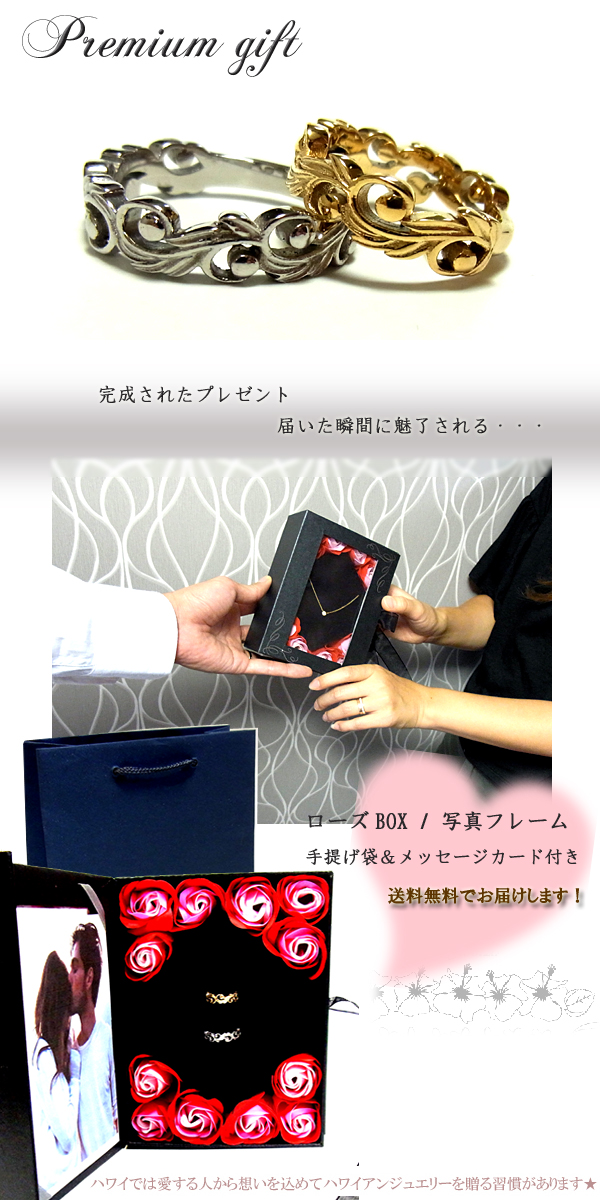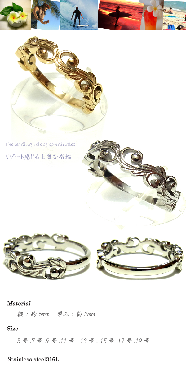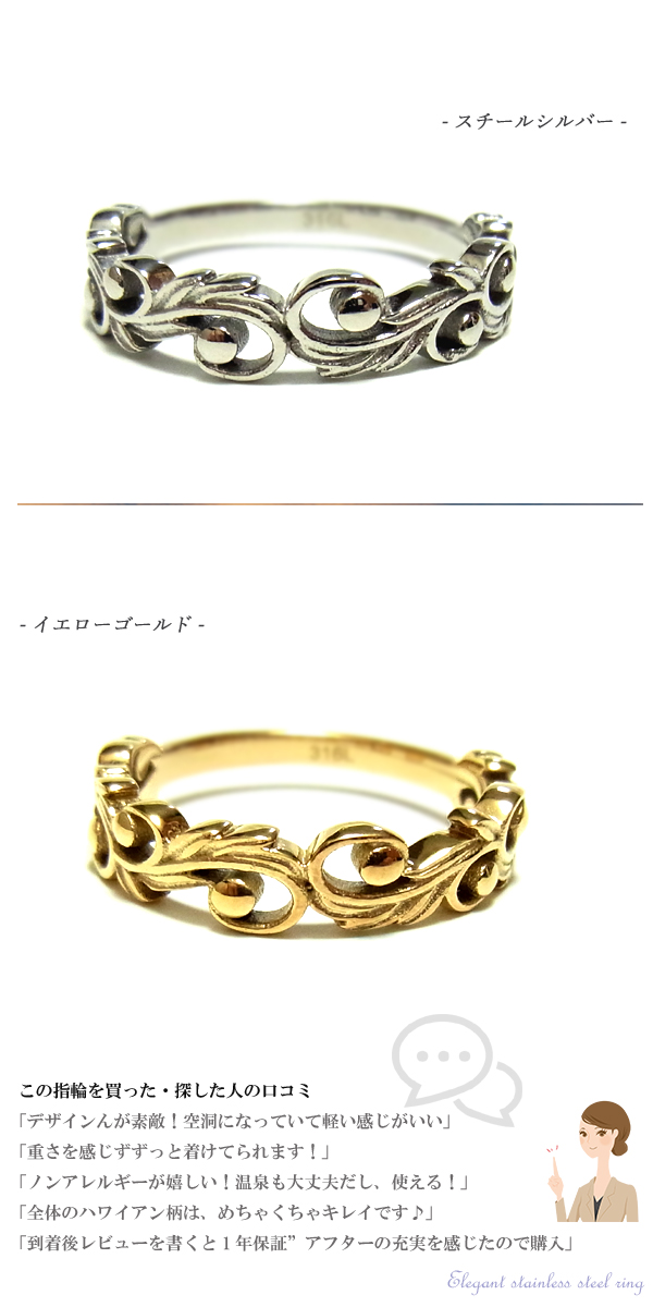 ペアリング ペアハワイアンジュエリー 指輪 透かし スクロール 金属アレルギー対応 サージカル ステンレス 花 入浴剤 写真フレーム フラワー ラッピング対応