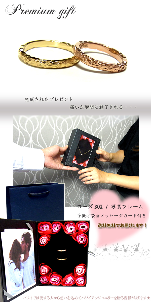ペアリング ペアハワイアンジュエリー 指輪 プルメリア カレイキニ 金属アレルギー対応 サージカル ステンレス 花 入浴剤 写真フレーム フラワー ラッピング対応