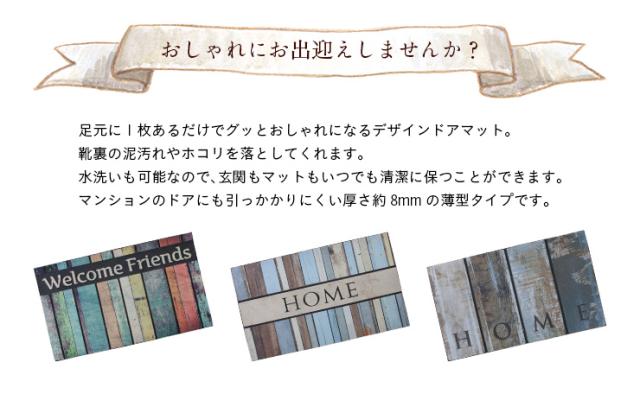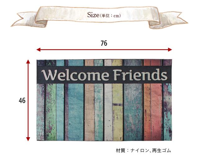 【水洗い可能】玄関用 デザイン ドアマット 76x46cm 屋外 長方形 薄型 洗える 玄関マット ウェルカムマット ホームマット welcome friends home matto