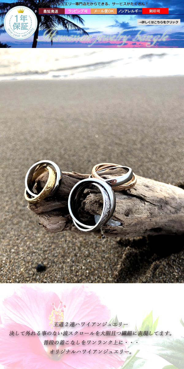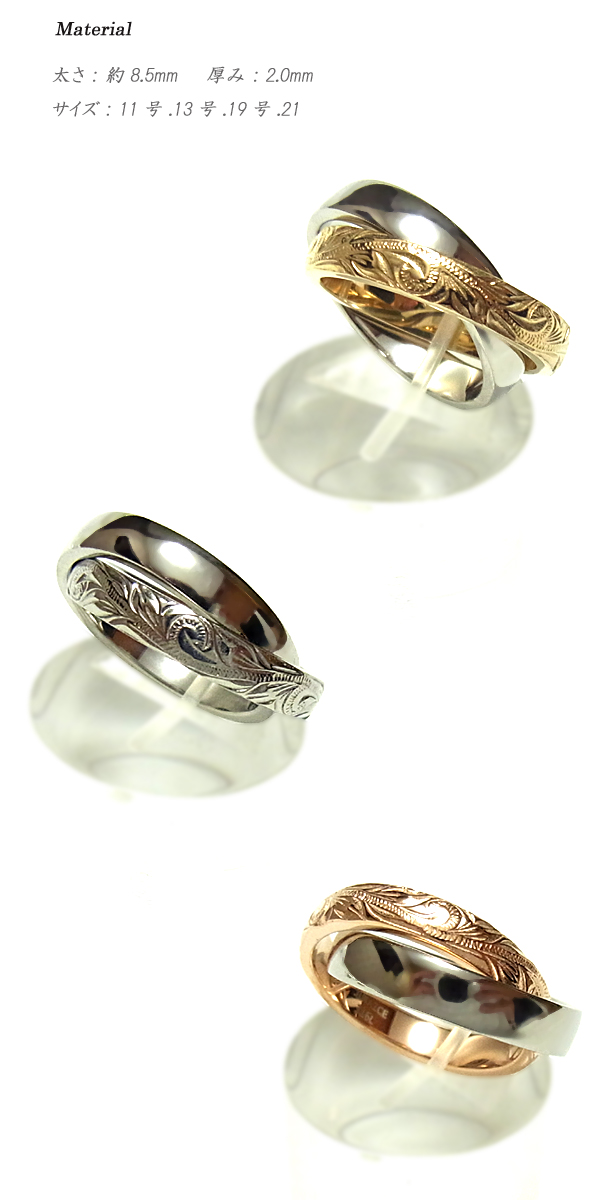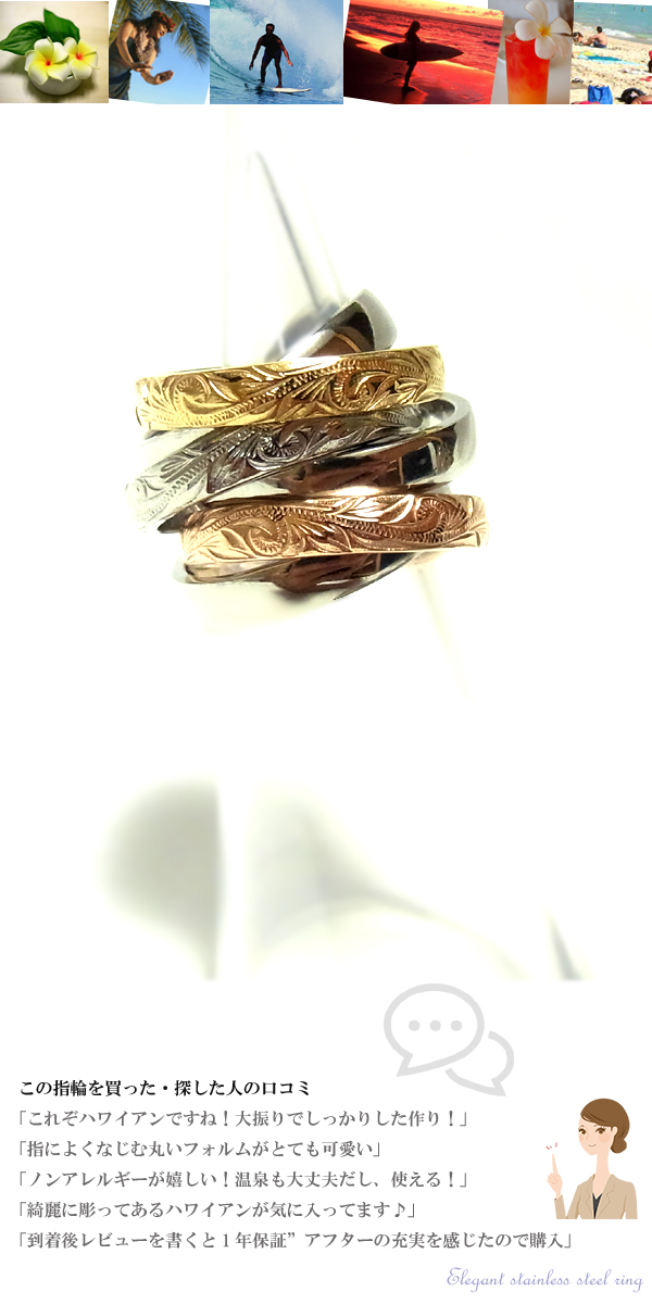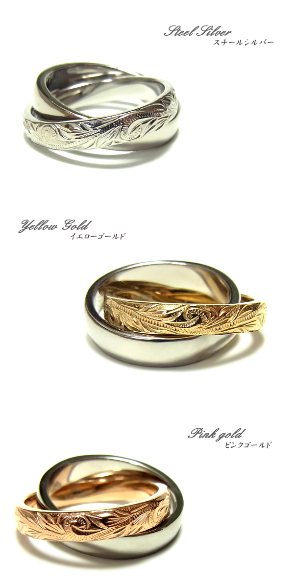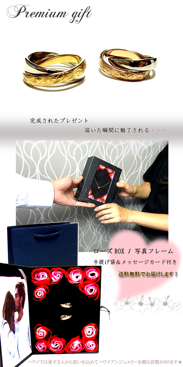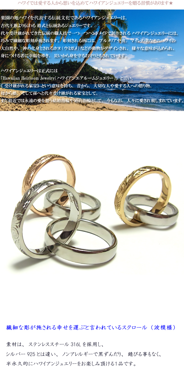 ペアリング ペアハワイアンジュエリー 指輪 2連リング カレイキニ スクロール 金属アレルギー対応 サージカル ステンレス 花 入浴剤 写真フレーム フラワー ラッピング対応