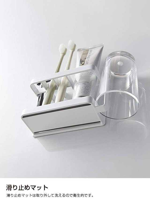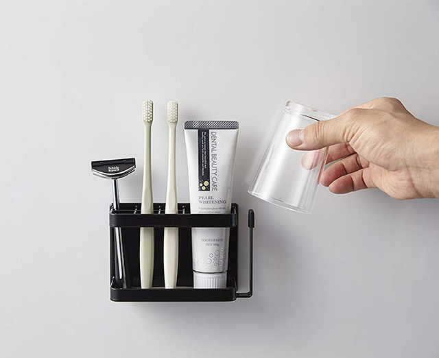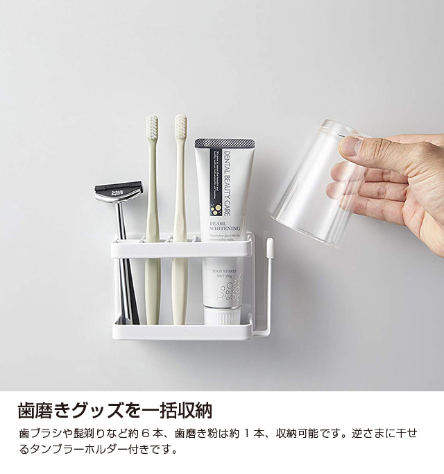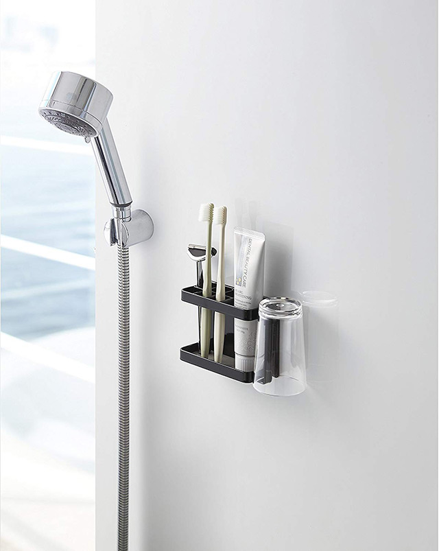 マグネットが付く浴室壁面に簡単取り付けの歯ブラシスタンド。 歯磨きグッズを一括収納。