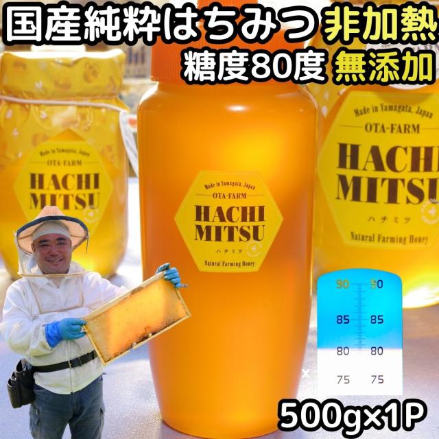 はちみつ 国産 送料無料 非加熱 蜂蜜 500g 1本 糖度80度越え 無添加 100% 日本 山形 国産