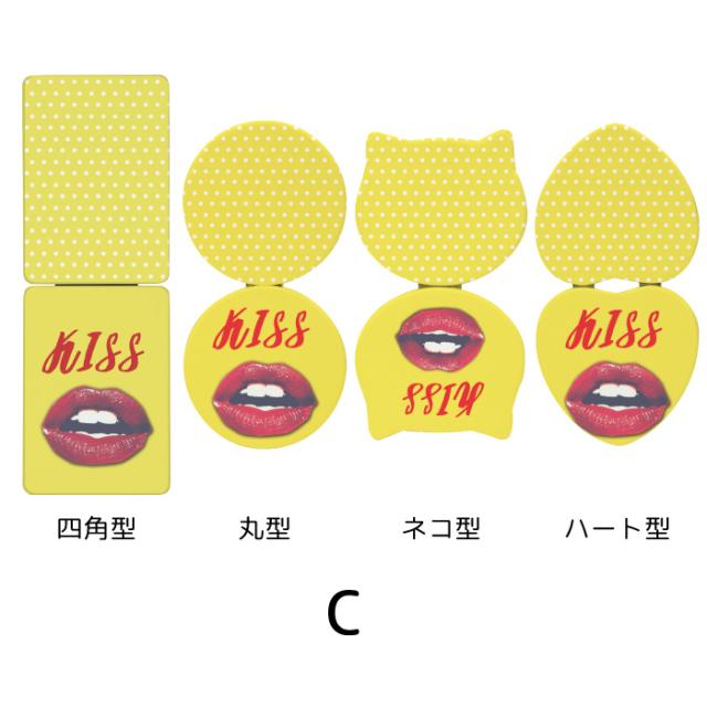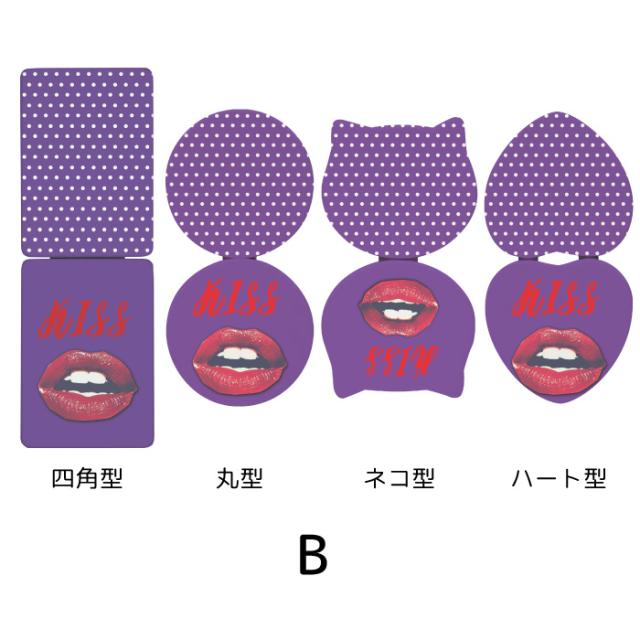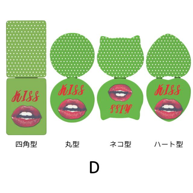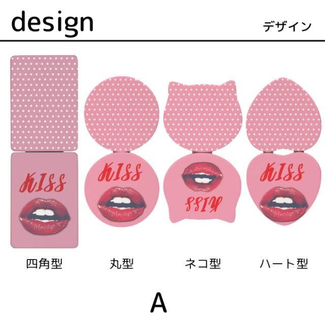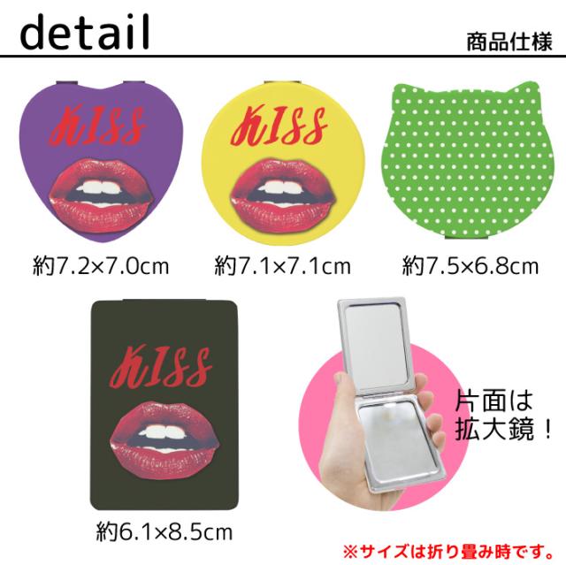 コンパクトミラー 折りたたみ 鏡 コンパクト ミラー 拡大鏡 付 携帯ミラー デザイン プリント ハンドミラー 二つ折り 手鏡 丸型ミラー KISS 両面ミラー 四角 長方形 丸 円 ねこ 猫 ネコ ハート kgm022