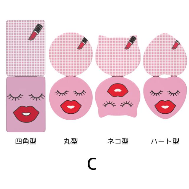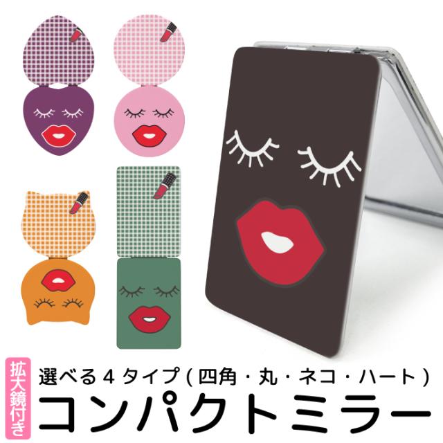 コンパクトミラー 折りたたみ 鏡 コンパクト ミラー 拡大鏡 付 携帯ミラー デザイン プリント ハンドミラー 二つ折り 手鏡 丸型ミラー リップガール 両面ミラー 四角 長方形 丸 円 ねこ 猫 ネコ ハート kgm028