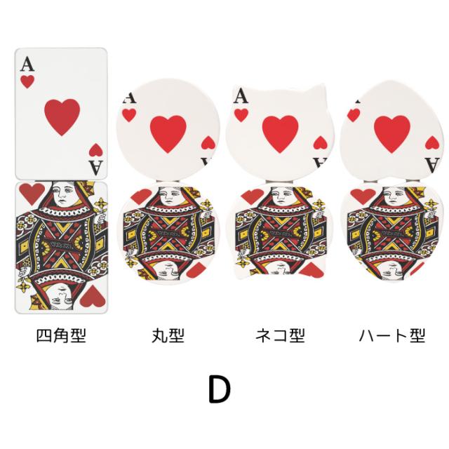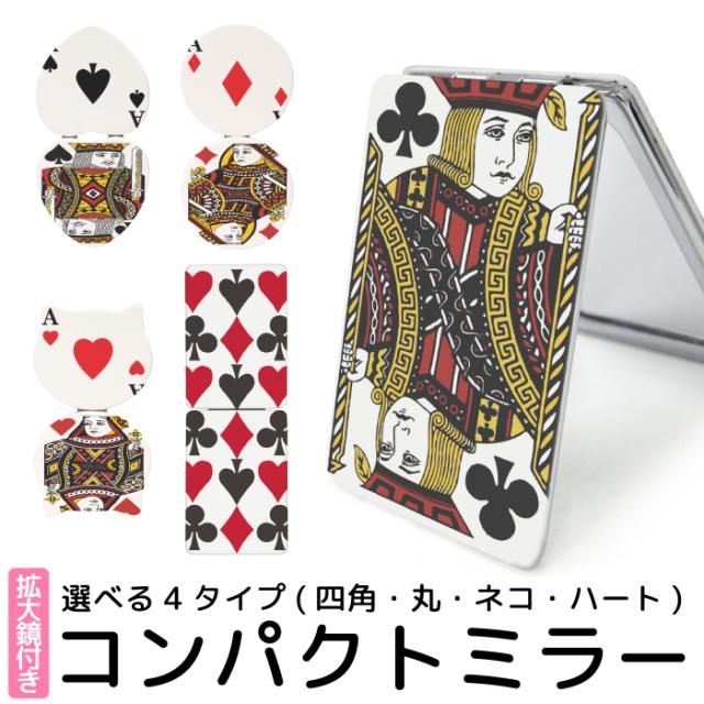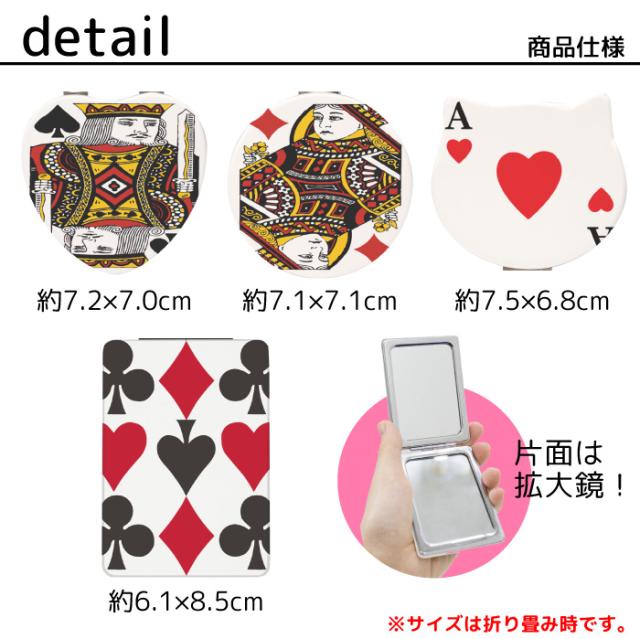 コンパクトミラー 折りたたみ 鏡 コンパクト ミラー 拡大鏡 付 携帯ミラー デザイン プリント ハンドミラー 二つ折り 手鏡 丸型ミラー トランプ 両面ミラー 四角 長方形 丸 円 ねこ 猫 ネコ ハート kgm034