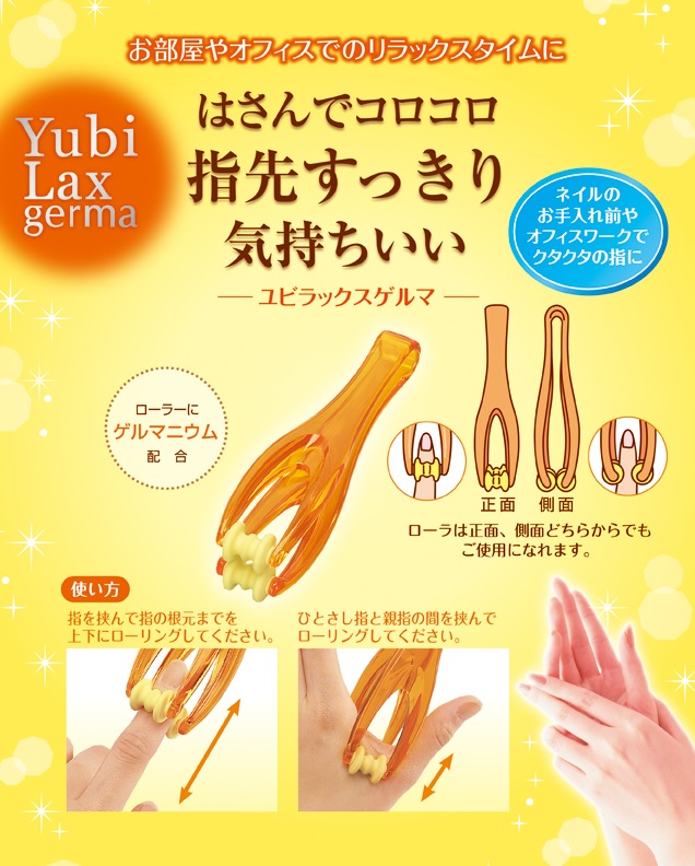指を1本ずつ挟むようにして上下にコロコロ刺激を与えて、お家やオフィスで手軽にできる