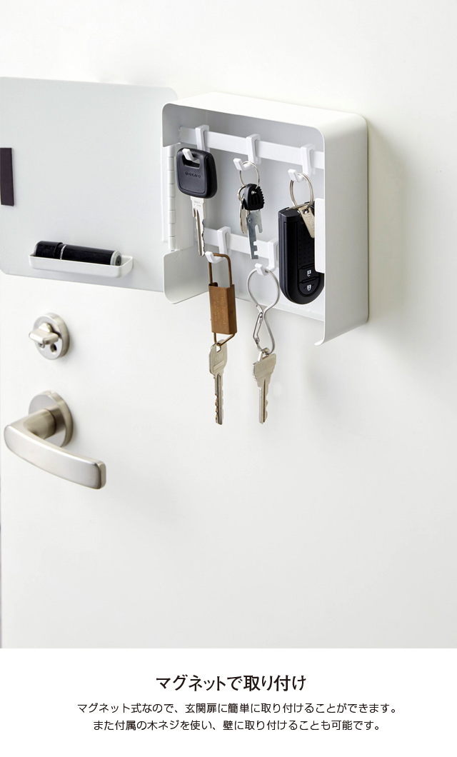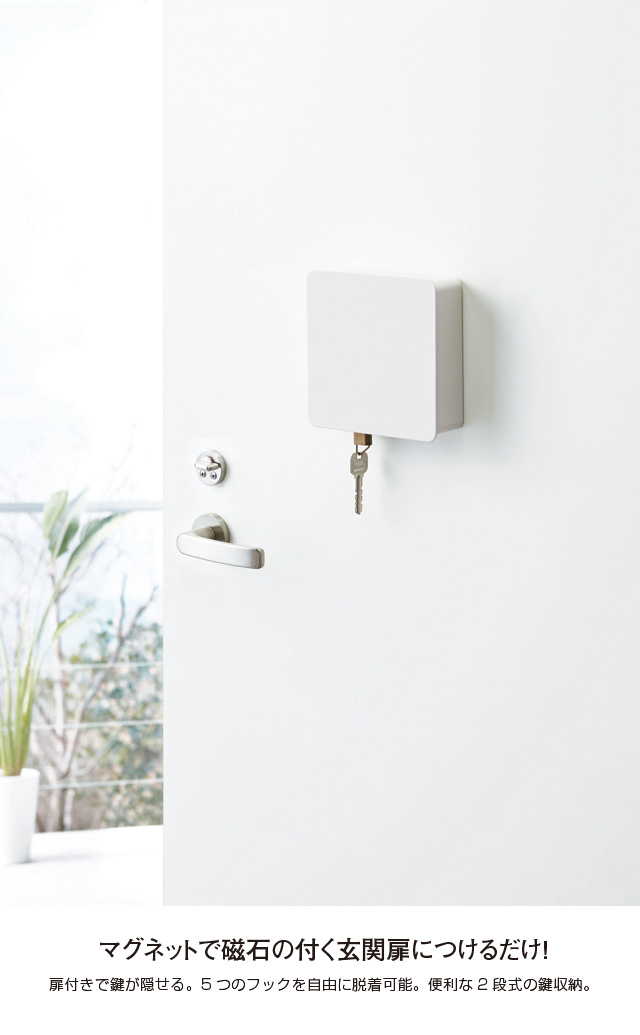 5つのフックを自由に脱着可能。 便利な2段式の鍵収納。