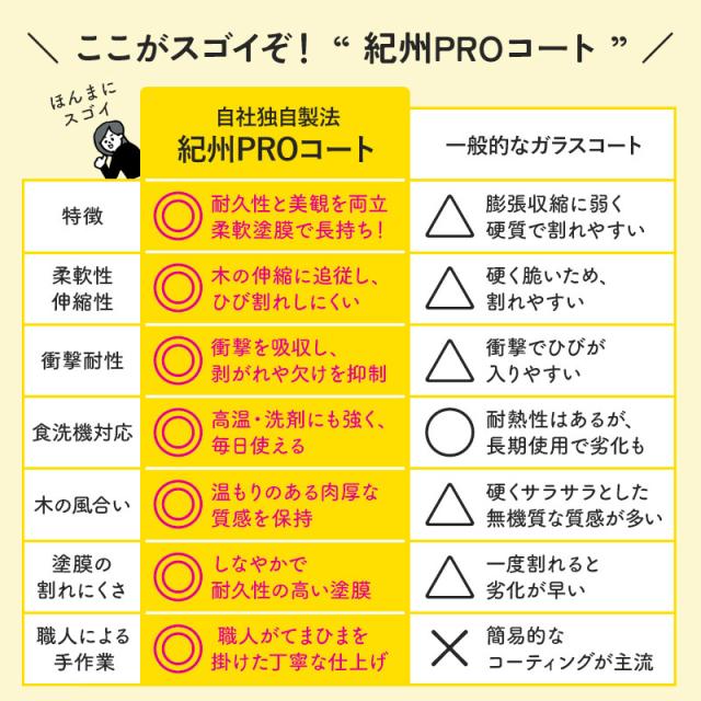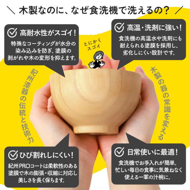 紀州漆器の職人が丁寧に仕上げた「紀州PROコート」により、木製なのに食洗機対応。