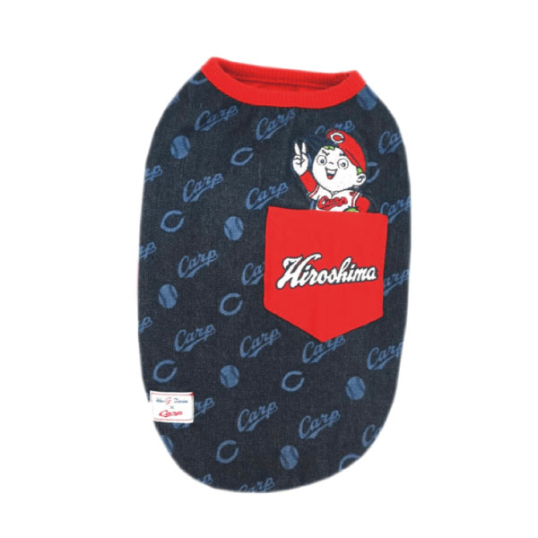 広島東洋カープグッズ デニム抜染Tシャツ カープ坊や ネイビー S-LL[2007] ドッグウェア ペット用品 ストレッチ 着脱簡単 ラッピング可