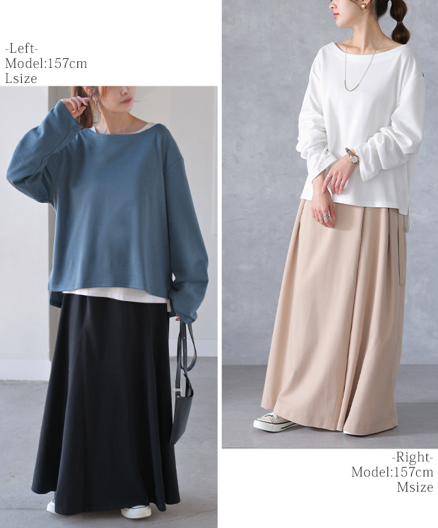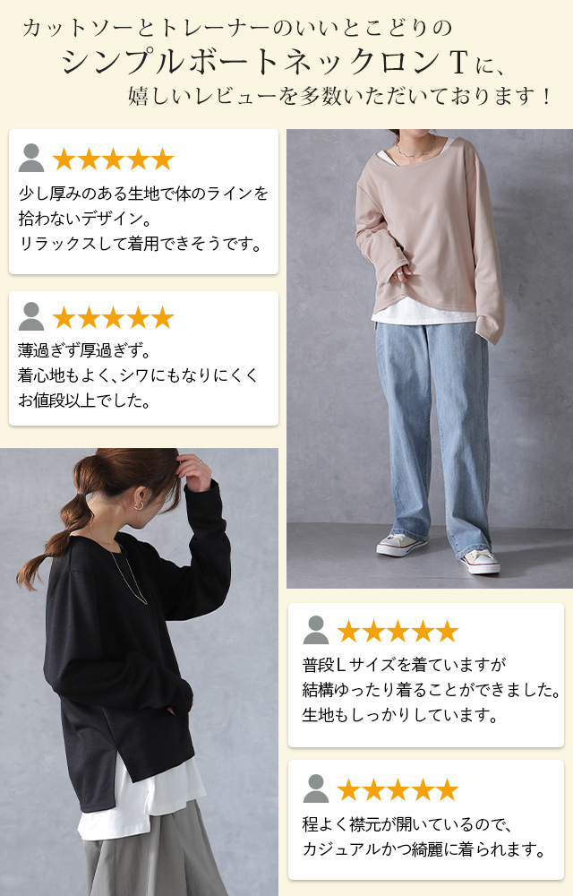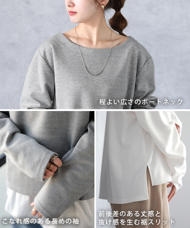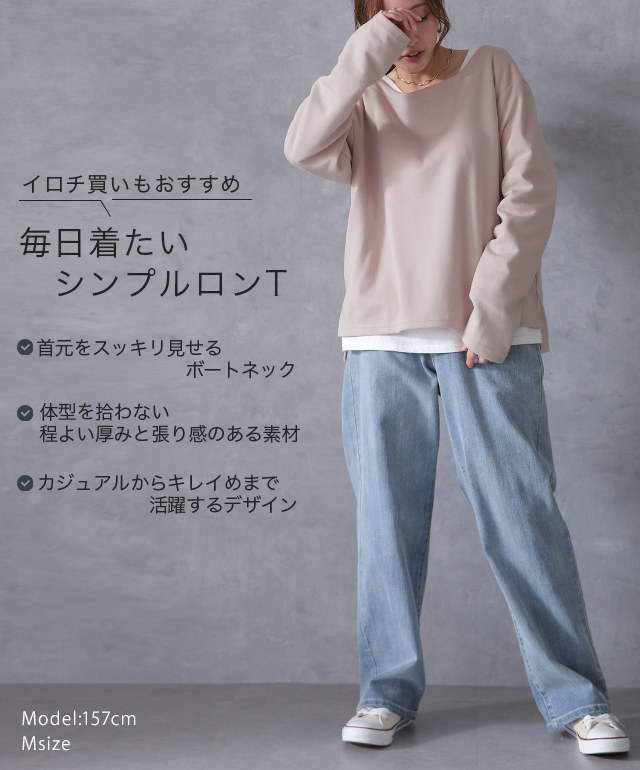 トップス レディース ボートネック ロングTシャツ ロンT Tシャツ カットソー 長袖 無地 シンプル 大きいサイズ スウェット トレーナー きれいめ ミディアム ゆる ゆったり レイヤード ベーシック 冬 秋 秋新作