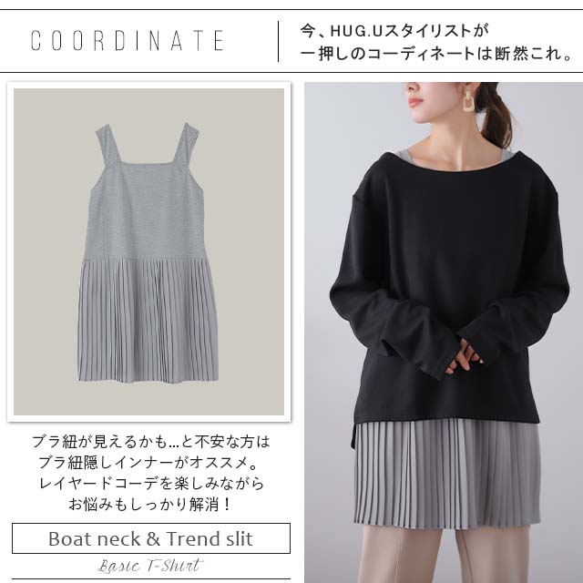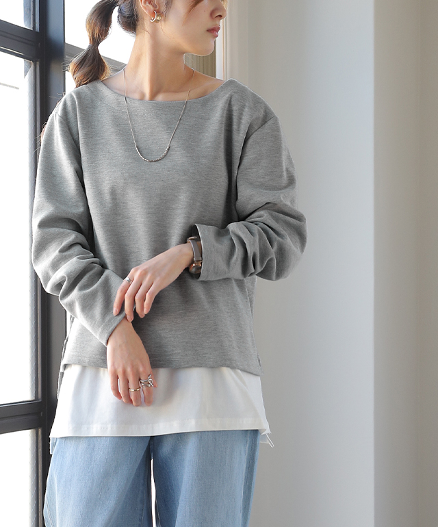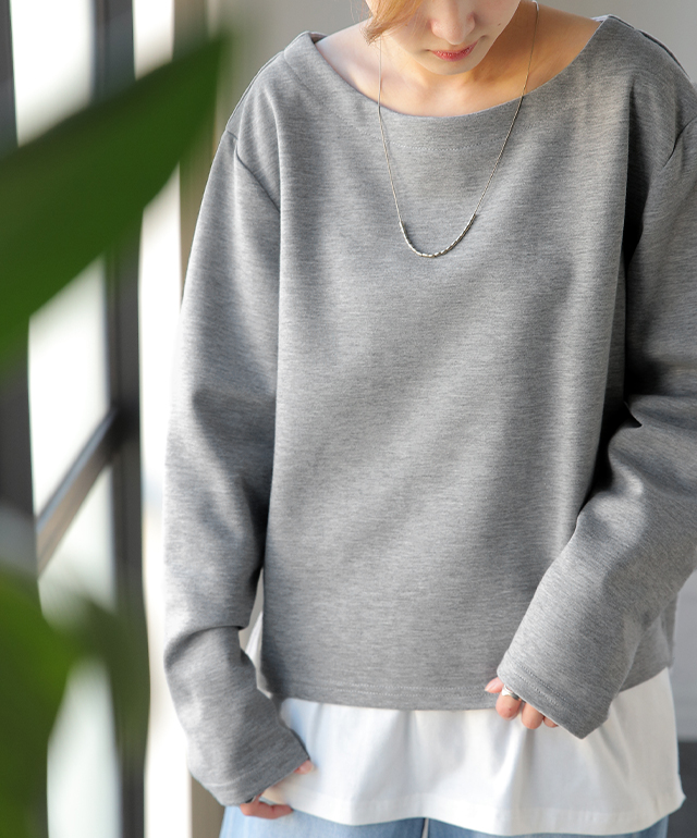 ゆったり ミドル丈 ビック ビッグ ビッグシルエット ビックシルエット レイヤードトップス スエット U字ネック 丸首 着回し ドロップショルダー オフィスカジュアル オフィス カジュアル ホワイト ヌーディーカラー ベージュ グレー ピーコックブルー カーキ グリーン ブラック 白 白色 桃 桃色 灰色 青 青色 緑 緑色 黒 黒色 体型カバー 着痩せ M L XL 20代 30代 40代 50代 おしゃれ 母の日 お洒落 オシャレ かわいい 可愛い カワイイ HUG.U HUGU ハグユー はぐゆー