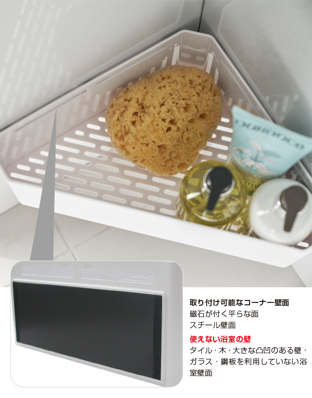 ディスペンサー・洗顔チューブ・バス小物などの収納にも。 水切れもしっかり!