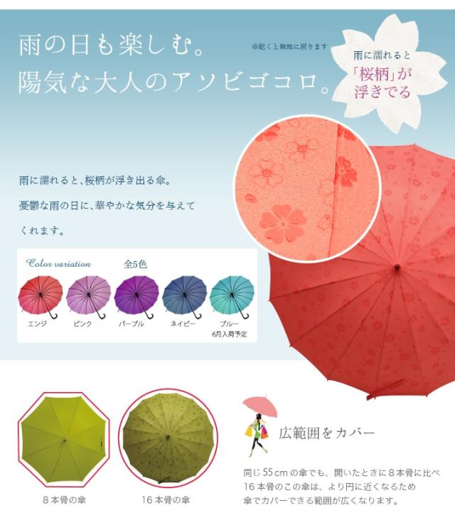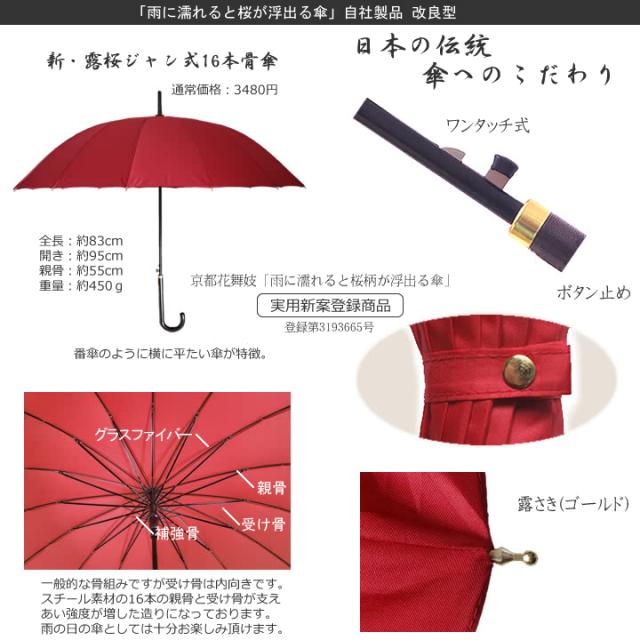 傘 雨に濡れると桜が浮き出る傘 16骨傘 ジャンプ傘 ワンタッチ式 京都 露桜傘 桜雫 婦人 女性 アンブレラ 入学祝い 卒業祝い 就職祝い 母の日 プレゼント