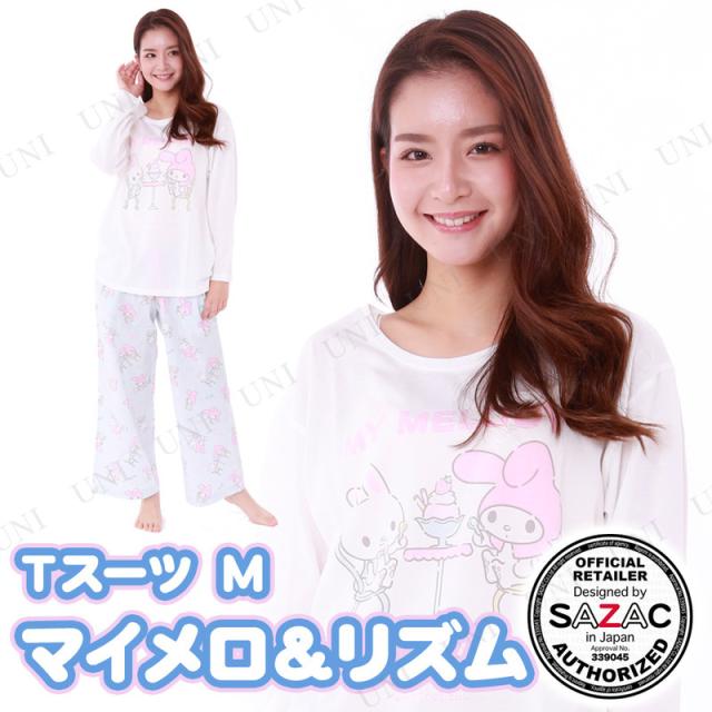 SAZAC(サザック) マイメロ&リズムTスーツ ホワイト×サックス レディスM サンリオ マイメロディ ルームウェア レディースファッション 女性 長袖 吸水性 プリントデザイン