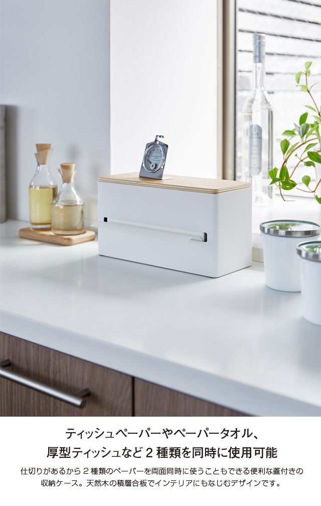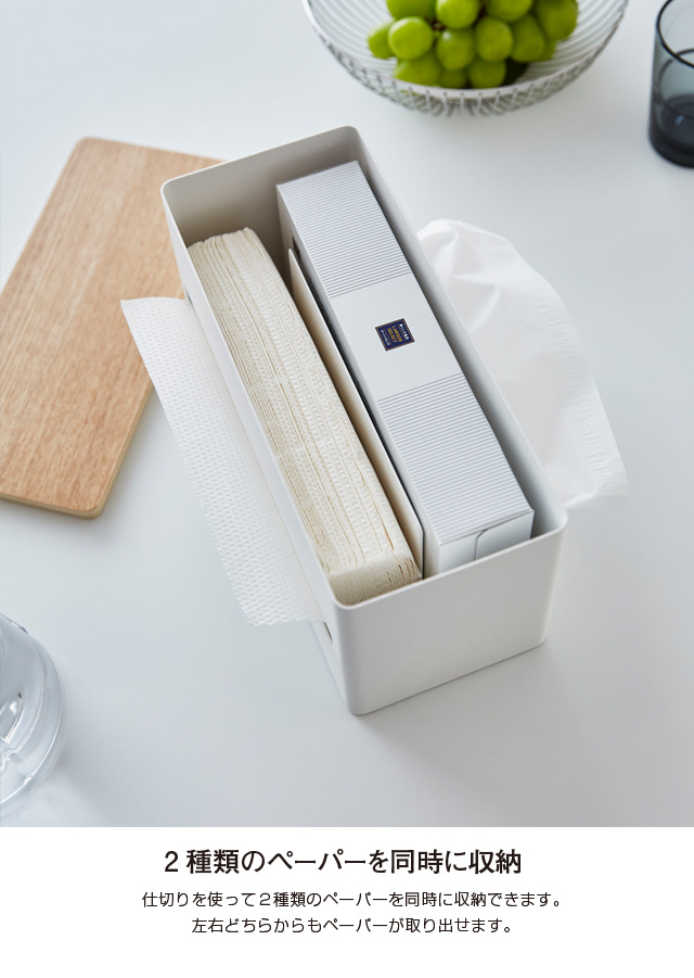 ティッシュペーパーやペーパータオル、厚型ティッシュなど2種類を同時に使用可能