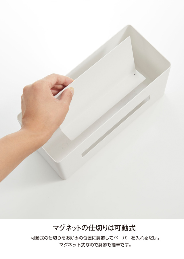 仕切りがあるから2種類のペーパーを両面同時に使うこともできる便利な蓋付きの収納ケース。