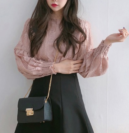 トップス ブラウス レース 長袖 ゆったり 大きいサイズ 大人可愛い 秋 春 ピンク アプリコット 10代 20代 30代 お出かけ デート 着まわし 上品 カジュアル フェミニン 清楚 トレンド