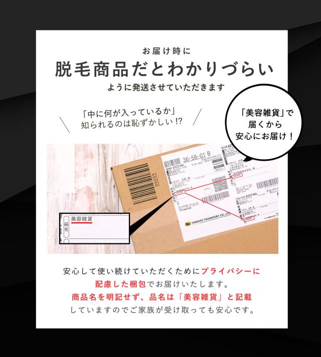 | 商品特徴 | 黒い炭で毛穴までゴッソリ!最短5分でスピード脱毛!剛毛も毛穴からキレイな肌に! |