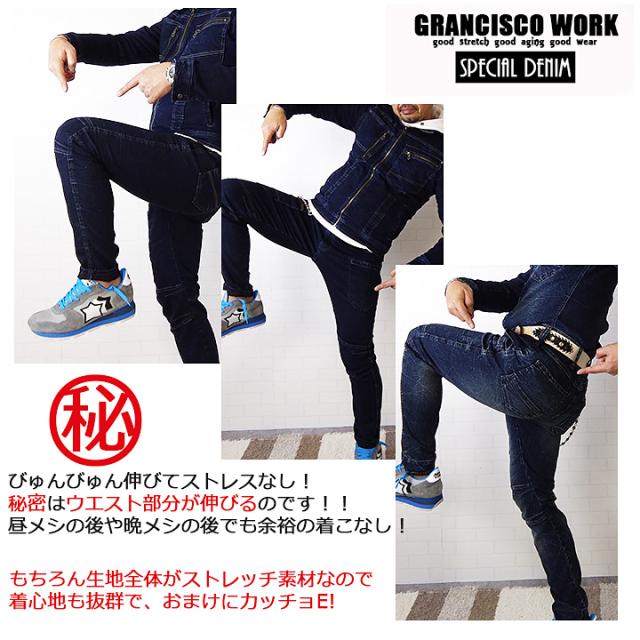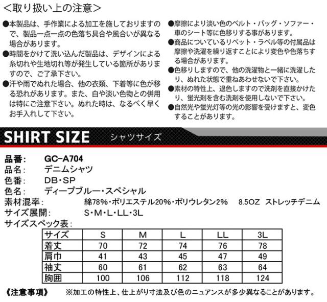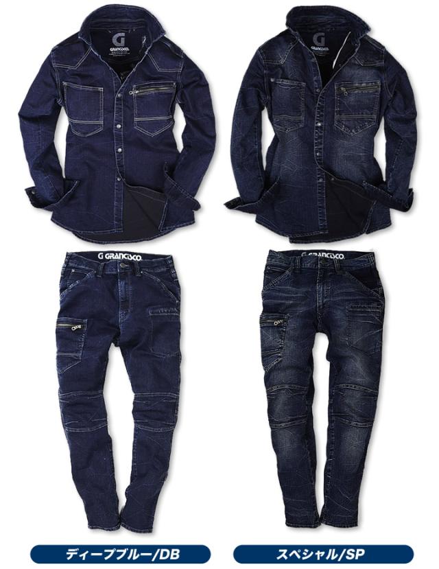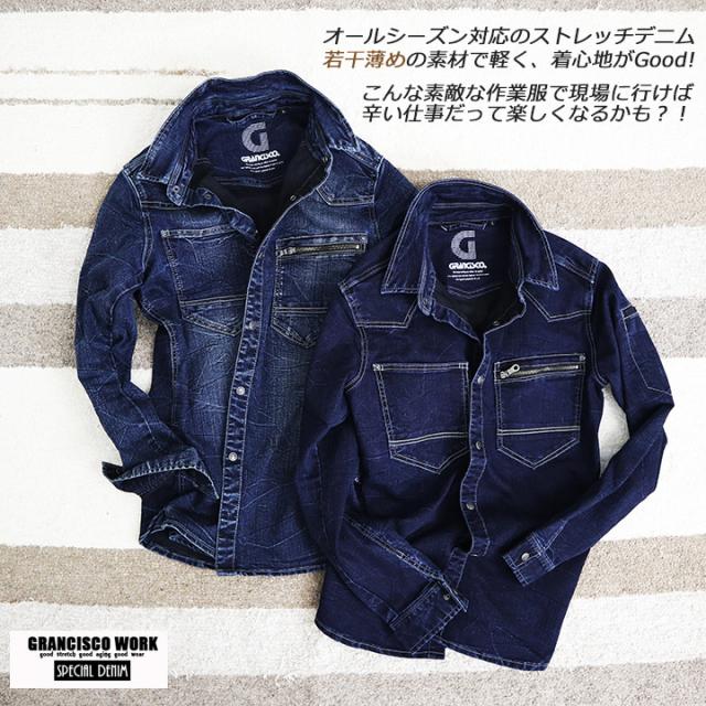 作業着 デニム 上下セット グランシスコ 作業服 シャツ カーゴパンツ オールシーズン GC-A704&GC-A712 長袖 ズボン タカヤ商事 A700シリーズ【即日発送】