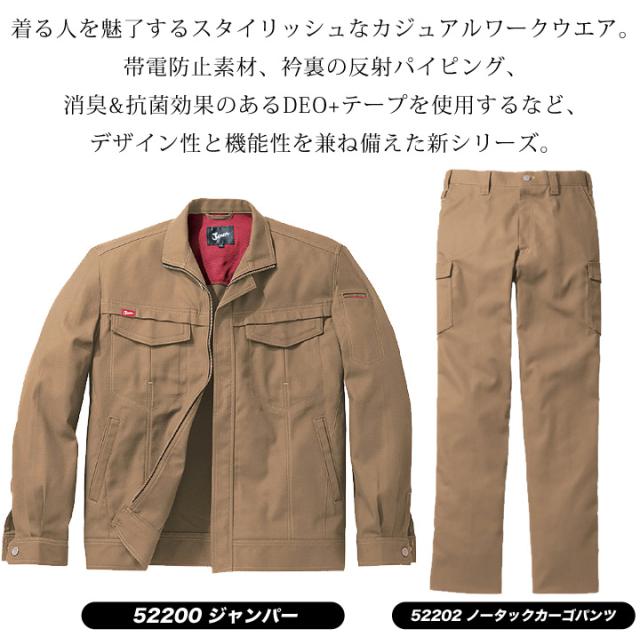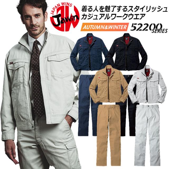 ジャウィン 上下セット 作業服 長袖ジャンパー カーゴパンツ【秋冬】52200&52202 ジャケット ブルゾン ズボン 作業着 JAWIN 52200シリーズ