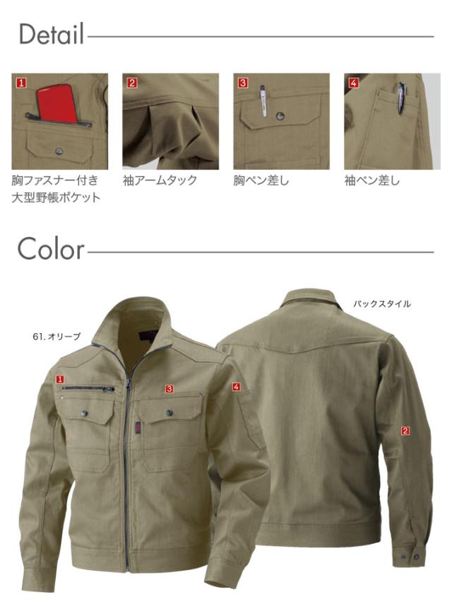 鳳皇 5403 長袖ブルゾン カジュアルスタイル【村上被服】アームタック 大型野帳ポケット ペン差し ストレッチ
