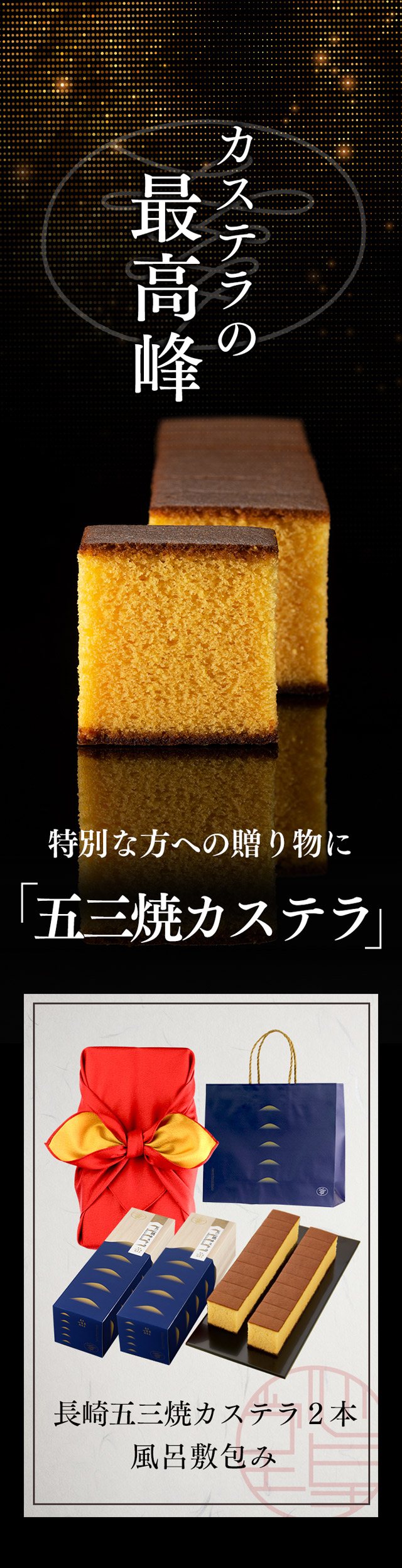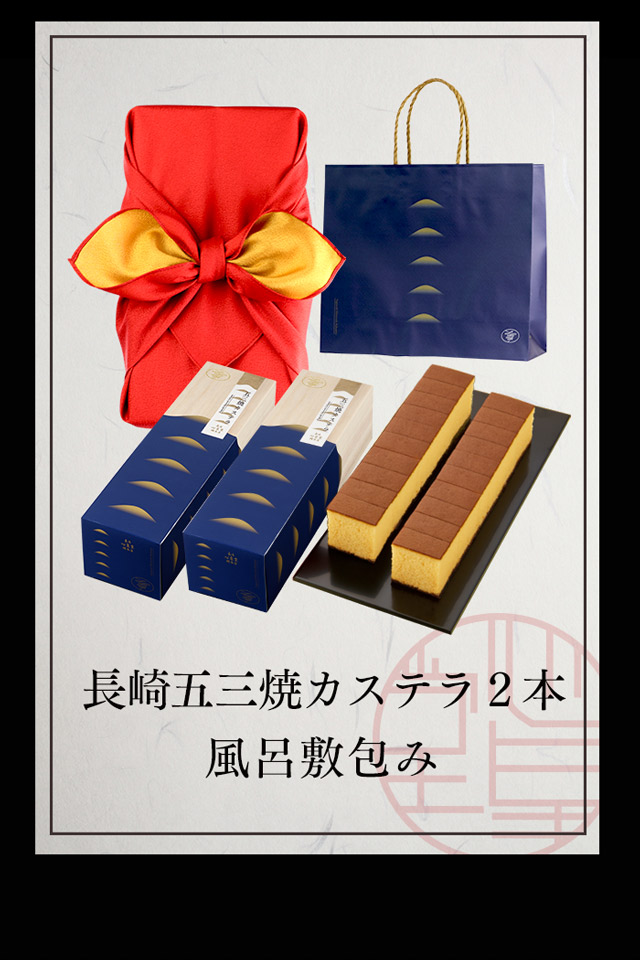 五三焼 カステラ [ お中元 プレゼント ギフト お菓子 和菓子 スイーツ お返し お土産菓子 送料無料 ] 0.6号2本 風呂敷包み T632 お歳暮 御歳暮 お年賀 御年賀 贈り物 お供え 内祝い 手土産 お土産 忘年会 年末年始 帰省土産 長崎 五三焼き 送料込み