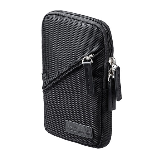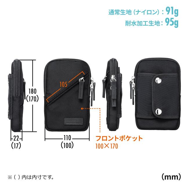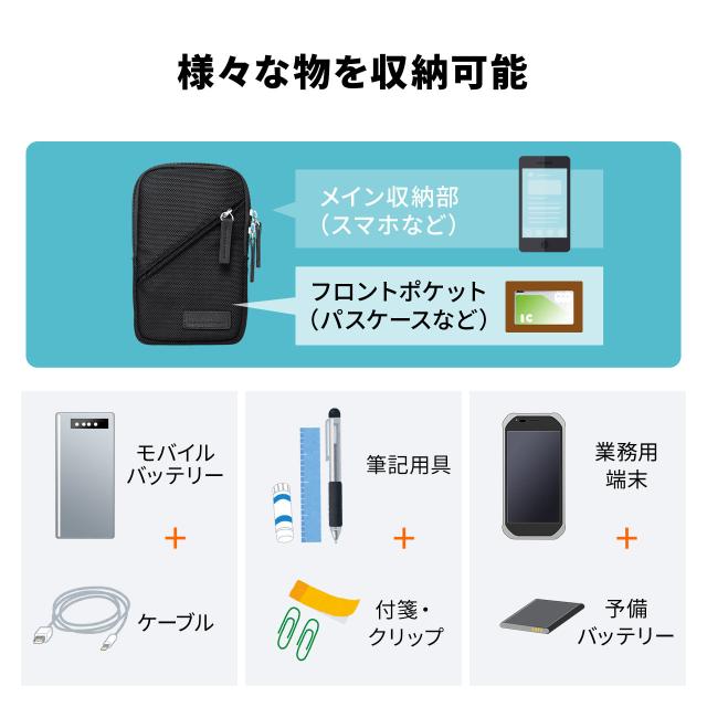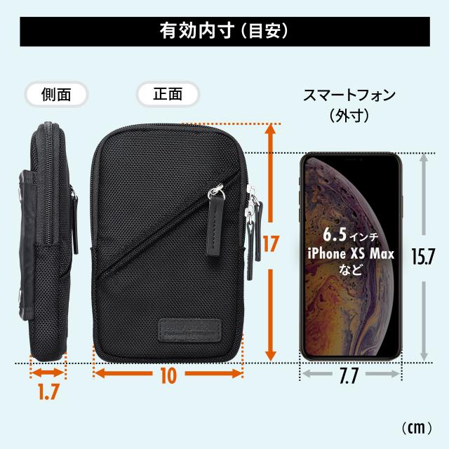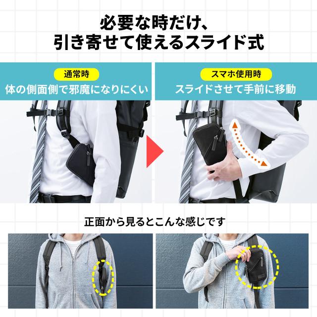 スマホポーチ 6.5インチ スマートフォン用 リュックベルト ショルダーベルト取り付け ブラック[200-BAGOP2]