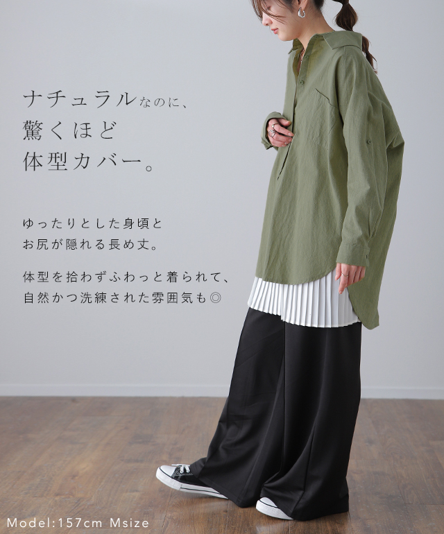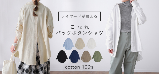 シンプルにひと工夫加えた、ゆる感シルエットのコットンシャツです。