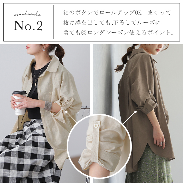 - 生地はしっかりしてるけど厚いと言うほどではないですし、袖もロールアップ出来るのでいいと思います。私は暑がりなので、春と秋に着ることにします。 丈や着た感じは画像の通りでした。
