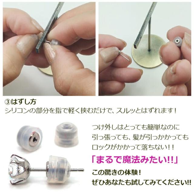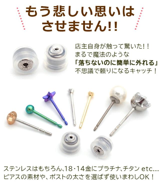 | ピアスキャッチ 落ちない ロック機能付き 金属アレルギー対応 シリコン&ステンレス製 フリーサイズ |