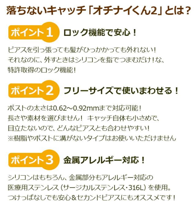 落ちない ピアス キャッチ オチナイくん【1個】金属アレルギー対応 ステンレス製 サージカル 医療用 シリコン 説明書 ケース付き【全品1個ずつバラ売り】