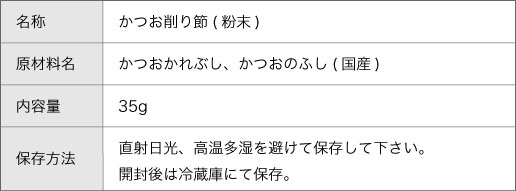【原材料名】かつおかれぶし、かつおのふし(国産)