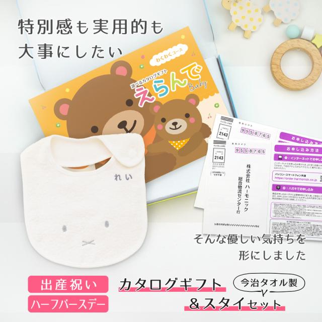 【セット内容】名入れ今治タオルスタイ1枚、カタログギフト(えらんでbabyわくわくコース)