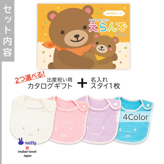 出産祝い カタログギフト えらんでBaby わくわくコースから2つ選べる & 今治タオル 名入れ ミッフィー スタイ セット ギフトセット 男の子 女の子 ビブ 赤ちゃん ママ友達に贈りたい人気カタログギフト プレゼント よだれかけ 育児グッズ miffy ビブ
