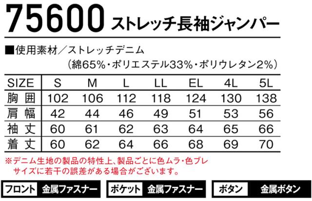作業服 上下セット Z-DRAGON デニム ストレッチ 75600 ブルゾン + 75602 カーゴパンツ 春夏 ユニフォーム 作業着 自重堂 75600シリーズ【送料無料】