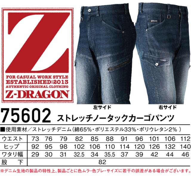 上下セット Z-DRAGON デニムジャケット 75600 ストレッチノータックカーゴパンツ 75602