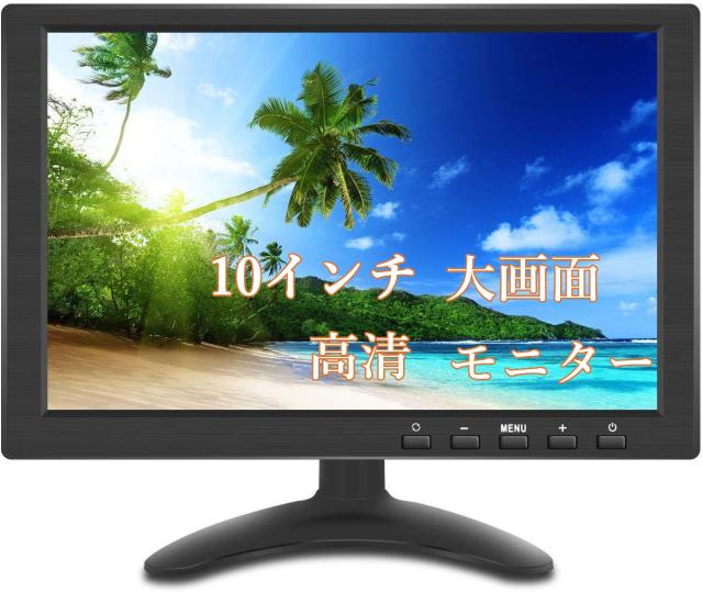 ディスプレイモニター 車載モニター 10インチ 大画面 メディアプレーヤー IPS 液晶使用 スピーカー USB HDMI VGA RCA 入力 パソコン DVR 防犯カメラ