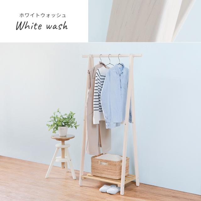 天然木パイン材を使用した置き棚付きハンガーラック。