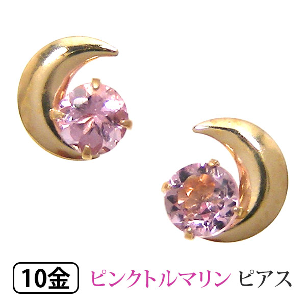 ピンクトルマリン 三日月 ピアス K10YG 10金 10k イエロー ゴールド