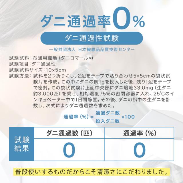 高密度繊維なのでダニを通さず、洗濯をしても効果が変わることはありません。