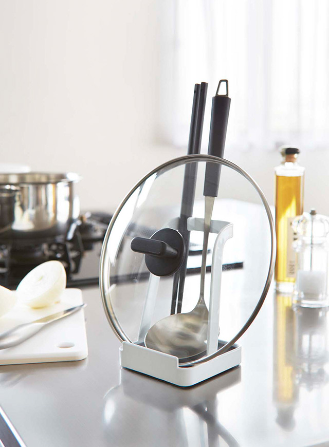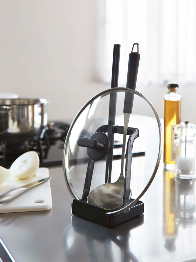 調理中にお玉や菜ばしや鍋ふたが置け る、ちょい置きスタンド。調理中のちょい置きに便利。お玉以外の小物(菜箸・ターナー・ヘラ・トング・しゃもじなど)や鍋蓋・フライパンカバーなどを立て ることができます。トレイは取り外し可能でサッと洗えます。レシピスタンドとして。タブレットPCスタンドとしても。お鍋のときに食卓でも大活躍。 |