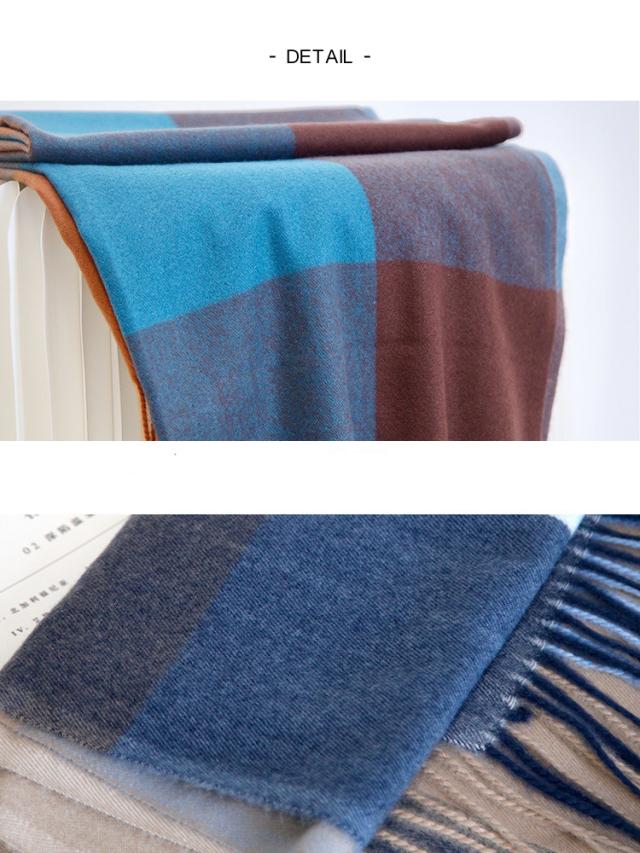 | 【製品について】: 男女兼用で使える大判チェックストール☆ 外出時に羽織ったり、ひざ掛けとしても活用できるのでオフィスにも最適! シンプルなコーデに1枚プラスするだけでオシャレに♪ |