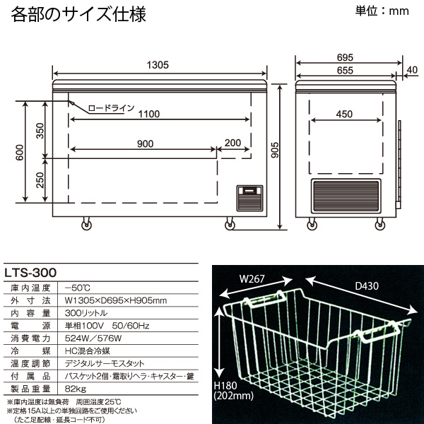 カノウ冷機 超低温ショーケース 冷凍ストッカー LTS-300 業務用冷凍庫 フリーザー 300L -50℃ 車上渡し 個人宅不可 代金引換不可 送料無料 (沖縄・離島・郡部除く) 設置オプションあり