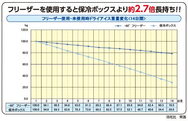 ドライアイスの長期保存が可能な超低温-80℃